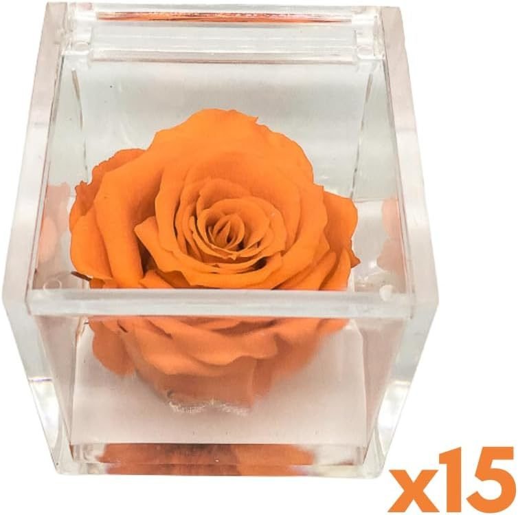 PremiumRose 15 Cubi Arancione Rossa Stabilizzata e Profumata da 5 cm con Rosa Eterna Vera, Idea Regalo Mamma, Fidanzata, Amica,