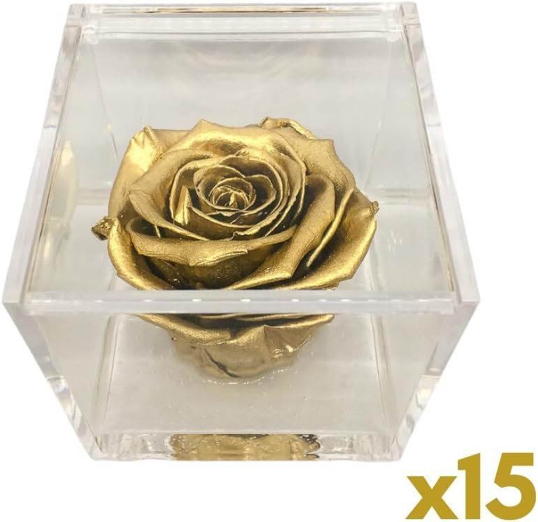 PremiumRose 15 Cubi Rosa Oro Stabilizzata e Profumata da 8 cm con Rosa Eterna Vera, Idea Regalo Mamma, Fidanzata, Amica, Idea