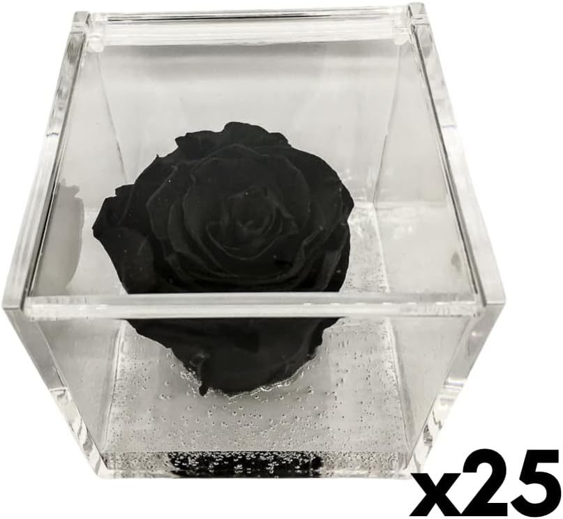 PremiumRose 25 Cubi Rosa Nera Stabilizzata e Profumata da 6 cm con Rosa Eterna Vera, Idea Regalo Mamma, Fidanzata, Amica, Idea