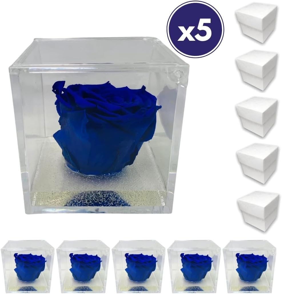 PremiumRose 5 Cubi Rosa Blu Stabilizzata e Profumata da 5 cm con Rosa Eterna Vera, Idea Regalo Mamma, Fidanzata, Amica, Idea