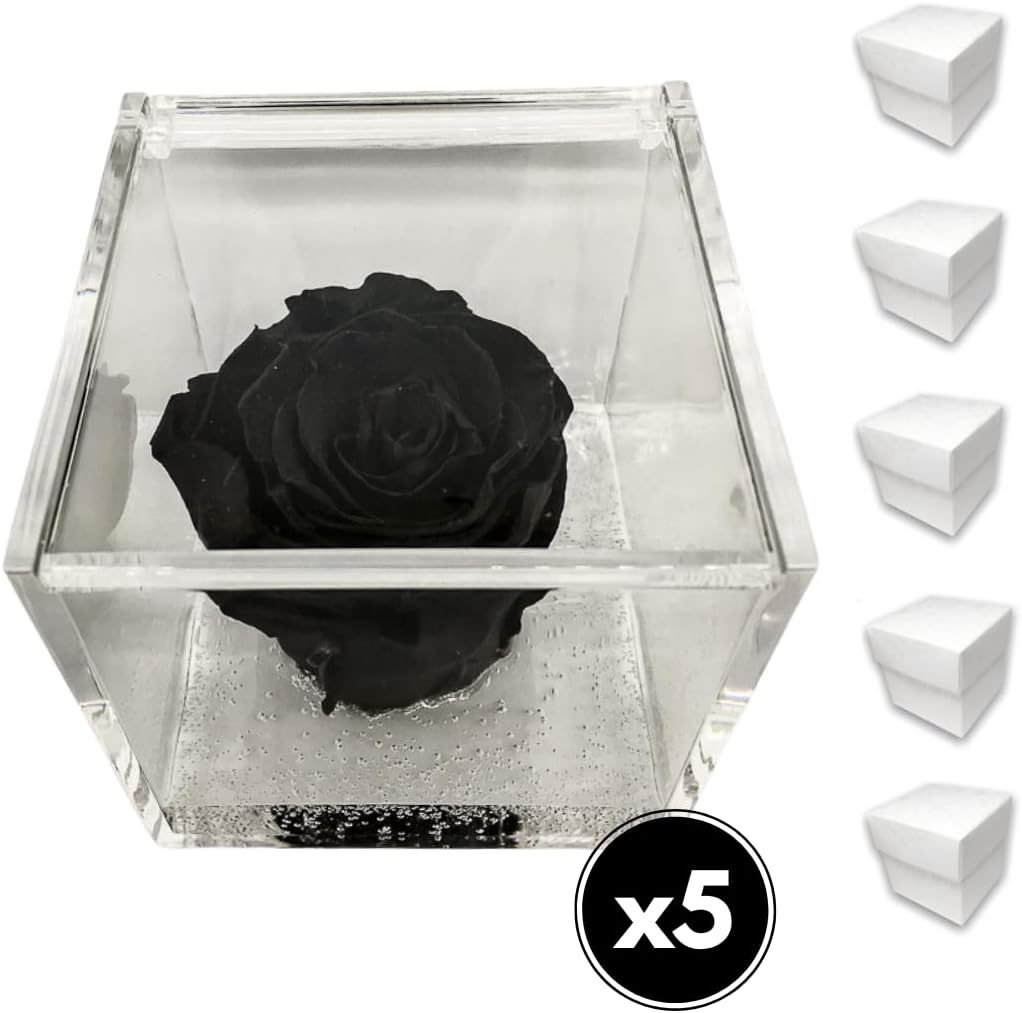 PremiumRose 5 Cubi Rosa Nera Stabilizzata e Profumata da 5 cm con Rosa Eterna Vera, Idea Regalo Mamma, Fidanzata, Amica, Idea