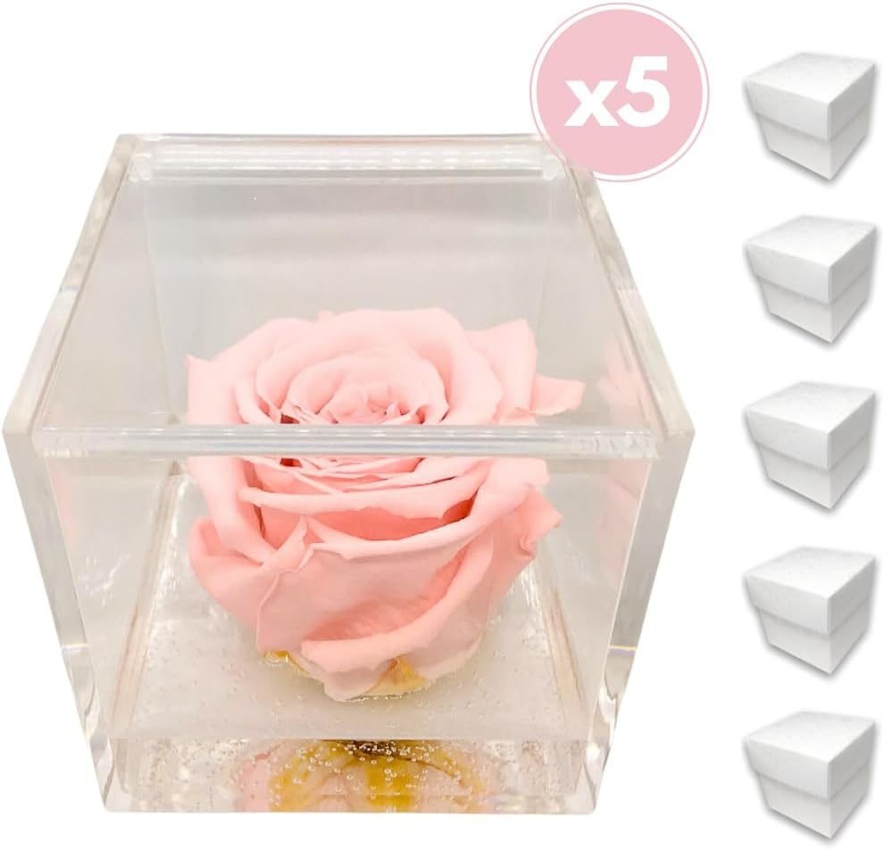 PremiumRose 5 Cubi Rosa Rosa Stabilizzata e Profumata da 8 cm con Rosa Eterna Vera, Idea Regalo Mamma, Fidanzata, Amica, Idea