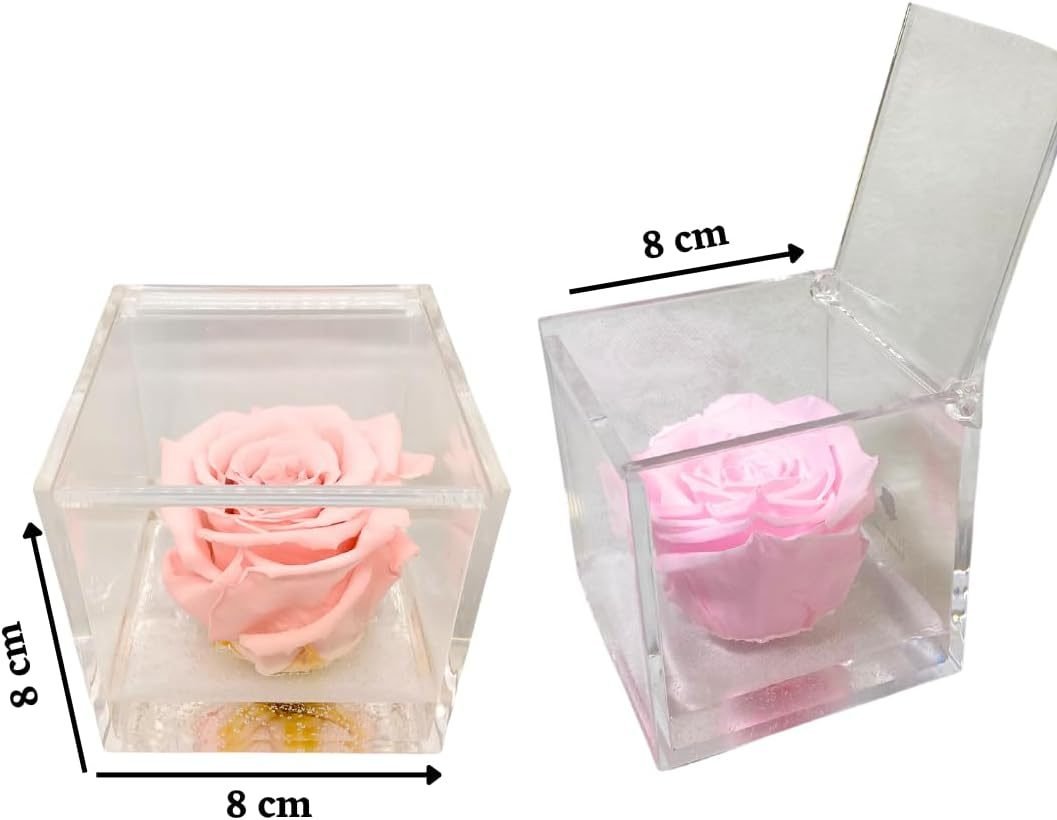 • 🌹 CUBO CON ROSA COLORATA – I nostri cubi con rose stabilizzate colorate sono un regalo originale per ogni occasione speciale. All’interno del cubo trasparente ed apribile, c’è una rosa stabilizzata immersa in un fondo trasparente con bollicine, per ricreare l’effetto di una rosa che galleggia sull’acqua. Ogni cubo racchiude una rosa che sprigiona un’essenza naturale profumata di alta qualità.