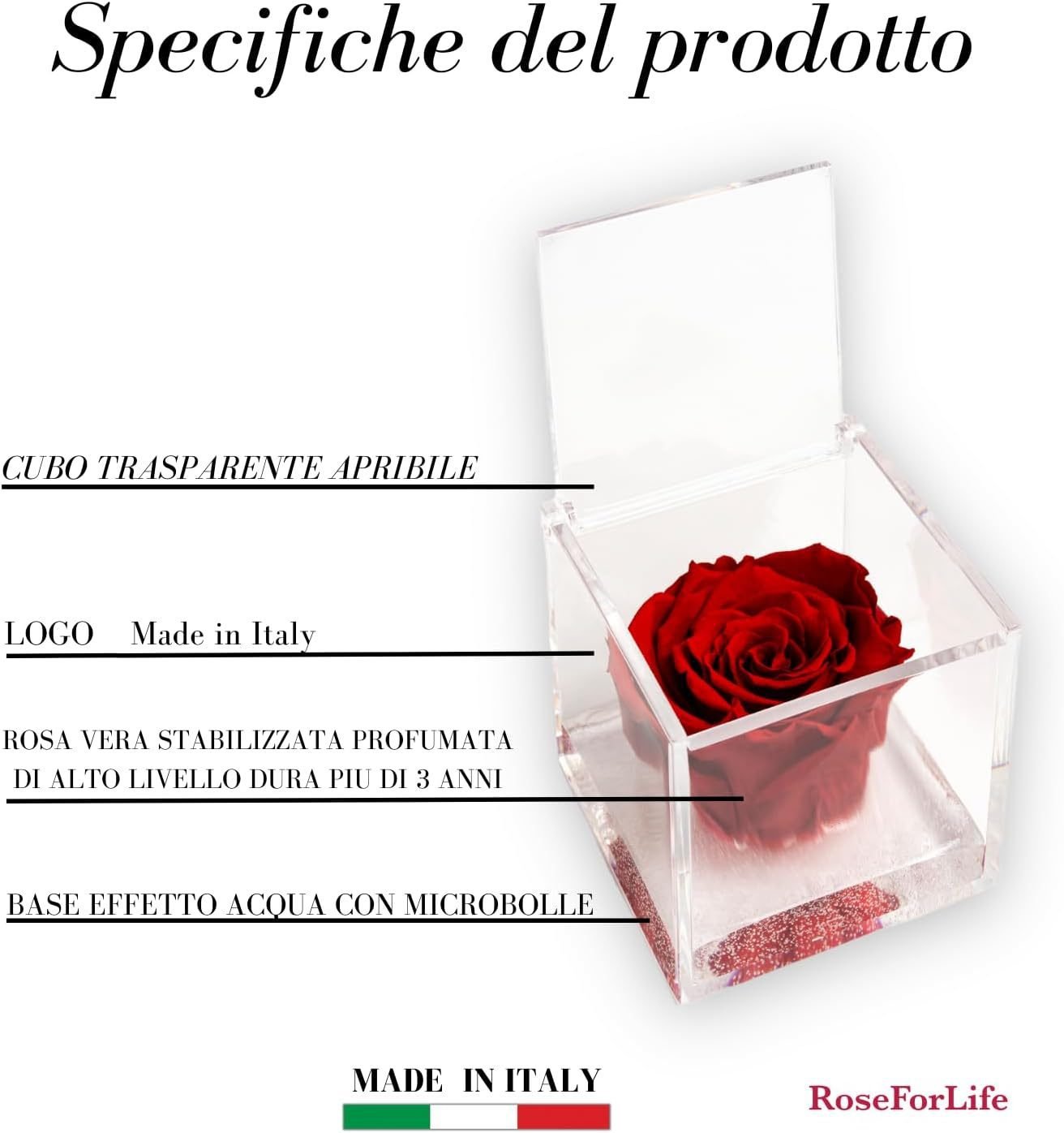 Ogni rosa è unica, Utilizziamo solo le migliori rose , mantenendo la morbidezza dei petali come se appena raccolta, che conferiscono un tocco di lusso e raffinatezza. Ogni rosa è accuratamente confezionata a mano, rendendola unica e irripetibile.